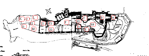 Wie bereits erwähnt, gestalteten die topologischen Voraussetzungen in den Ruinen die Erstellung eines gleichmäßigen Raster schwierig, daher wurde die Einteilung der Standorte nach den baulichen Gegebenheiten vorgenommen. Da die untersuchten Ruinen in verschiedene Räume gekammert ist, wurden diese Räume als Grundlage für die Datenerhebung genommen.